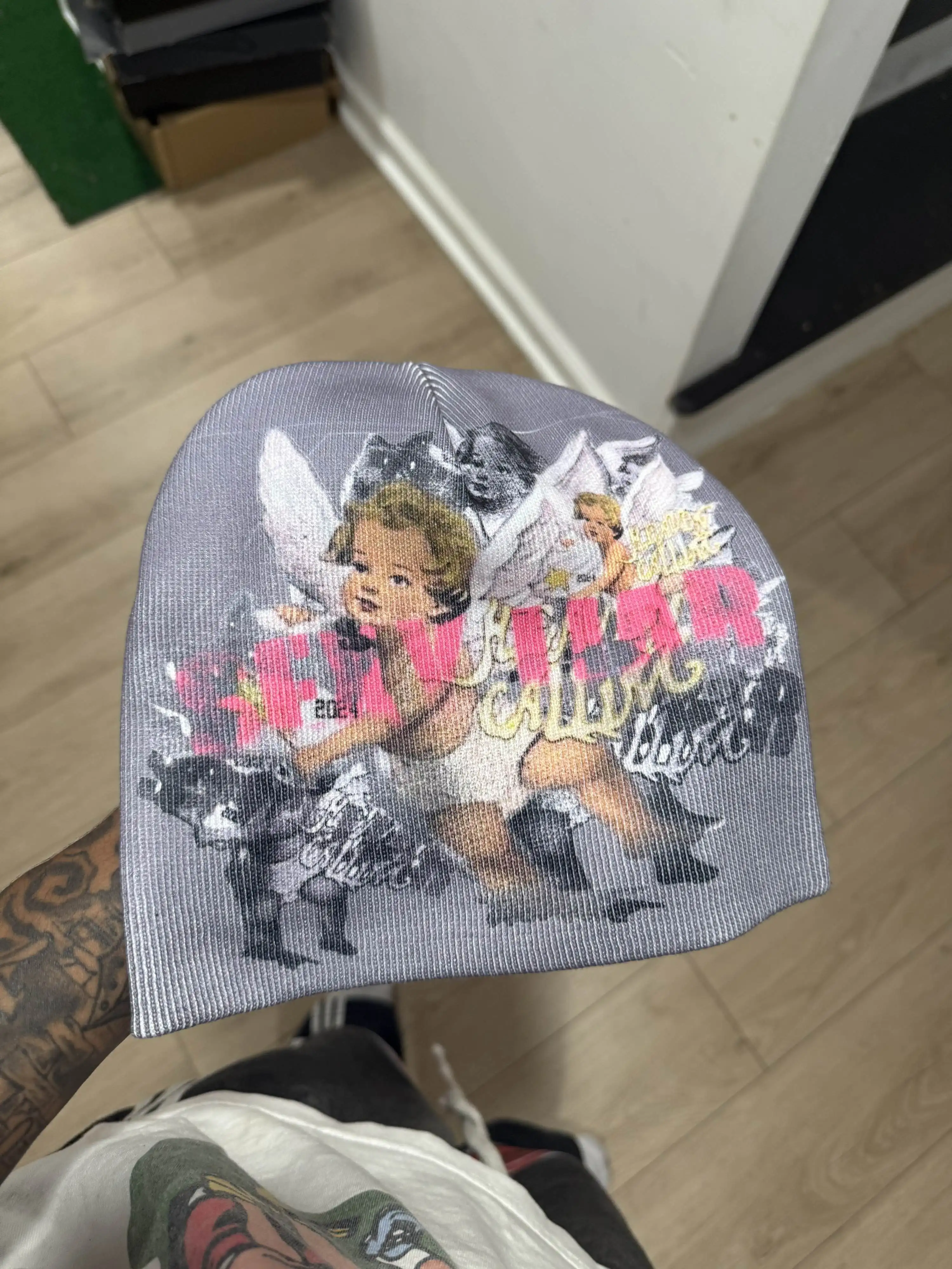 Wholesale Custom Logo Embroidery Custom Sublimation All Over Printed Unisex Knit Winter Cuffless Beanie Hat LOW MOQ